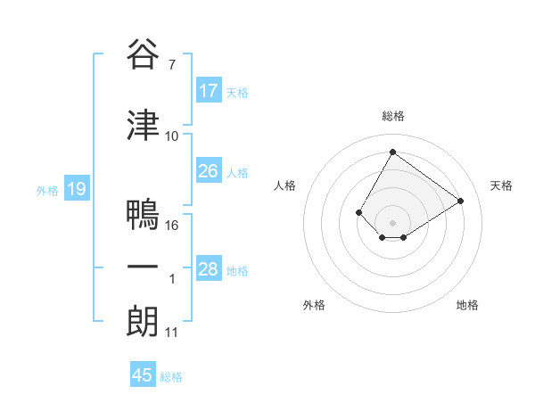 谷津 鴨一朗さんを姓名の画数から五運を鑑定