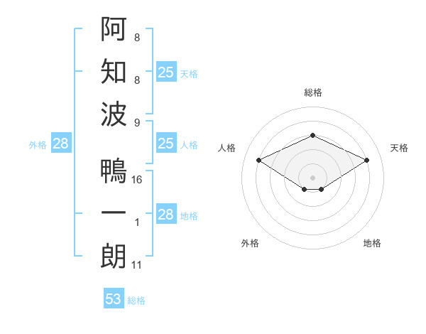 阿知波 鴨一朗さんの総格は53画の3点!