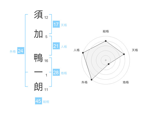 須加 鴨一朗さんの外格は24画の5点!