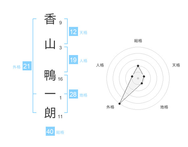 香山 鴨一朗さんを姓名の画数から五運を鑑定