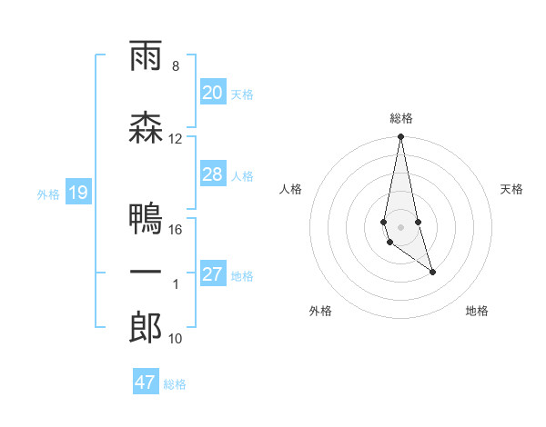 雨森 鴨一郎さんの総格は47画の5点!