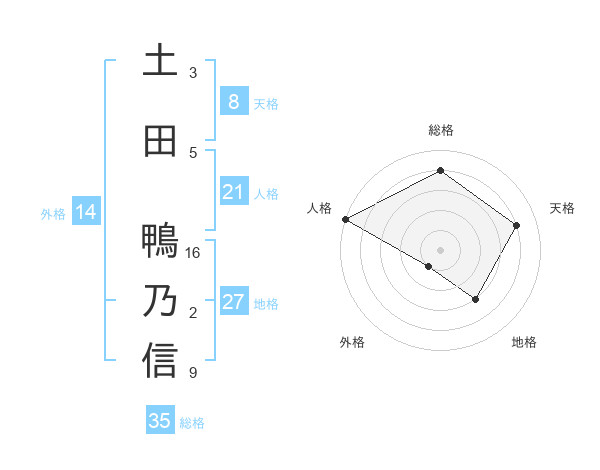 土田 鴨乃信さんの天格は8画の4点!