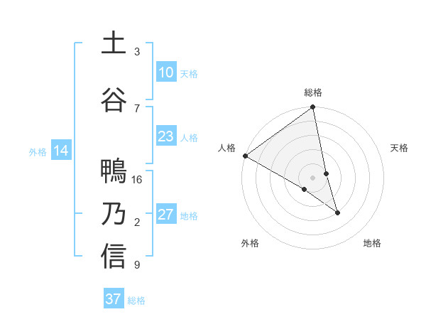 土谷 鴨乃信さんを姓名の画数から五運を鑑定