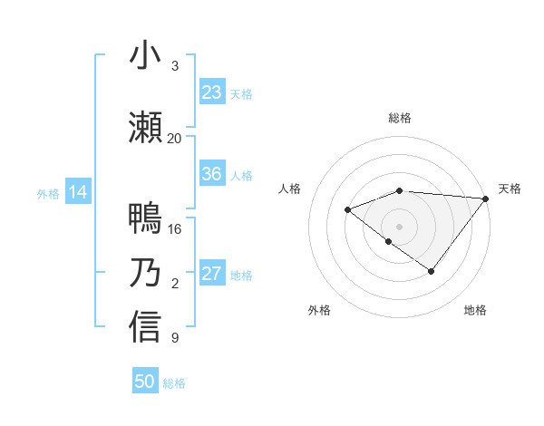 小瀬 鴨乃信さんを姓名の画数から五運を鑑定