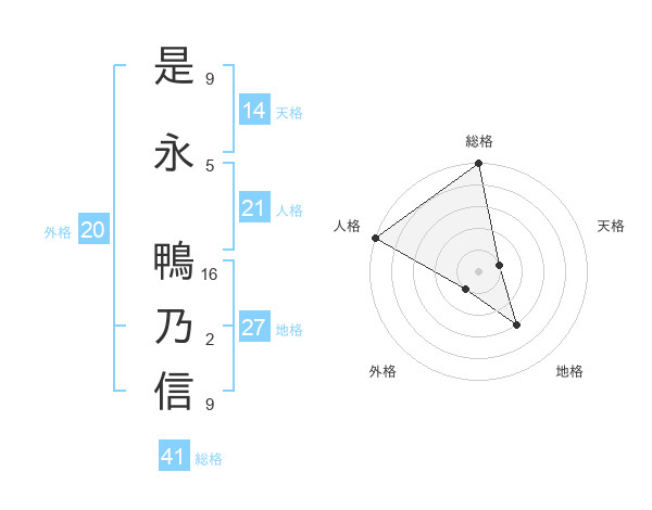 是永 鴨乃信さんを姓名の画数から五運を鑑定