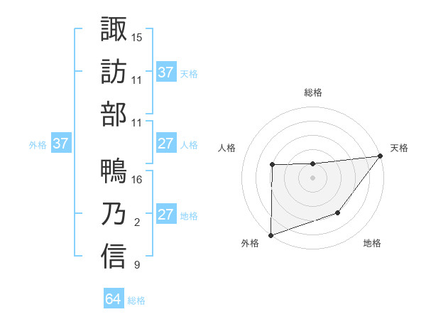 諏訪部 鴨乃信さんの外格は37画の5点!