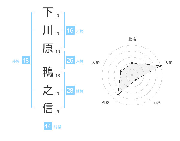 下川原 鴨之信さんの総格は44画の2点!