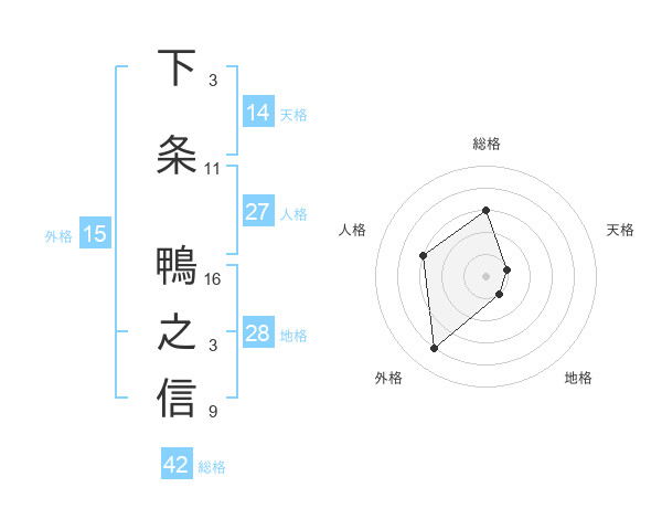 下条 鴨之信さんを姓名の画数から五運を鑑定