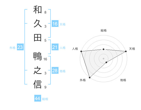 和久田 鴨之信さんを姓名の画数から五運を鑑定