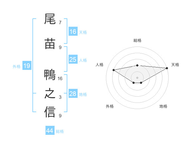 尾苗 鴨之信さんを姓名の画数から五運を鑑定