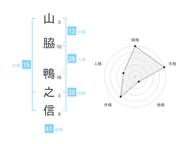 山脇 鴨之信さんを姓名の画数から五運を鑑定