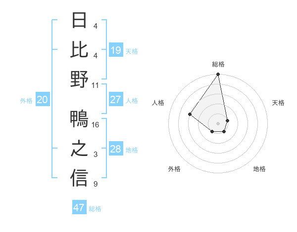 日比野 鴨之信さんを姓名の画数から五運を鑑定