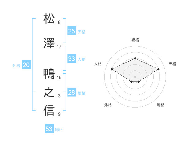 松澤 鴨之信さんを姓名の画数から五運を鑑定