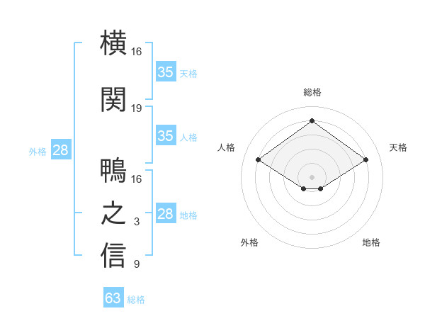 横関 鴨之信さんの総格は63画の4点