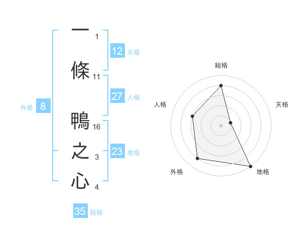 一條 鴨之心さんを姓名の画数から五運を鑑定