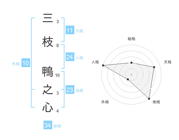 三枝 鴨之心さんを姓名の画数から五運を鑑定