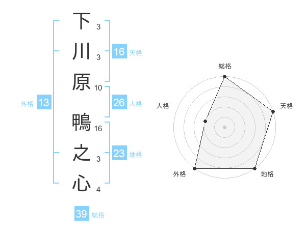 下川原 鴨之心さんを姓名の画数から五運を鑑定
