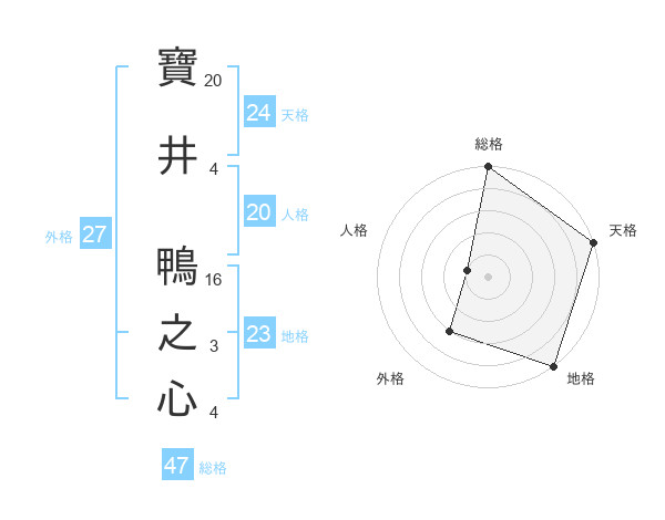 寶井 鴨之心さんを姓名の画数から五運を鑑定