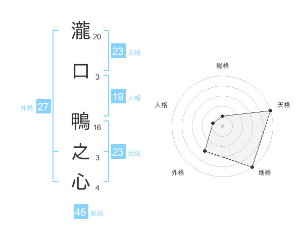 瀧口 鴨之心さんの地格は23画の5点!