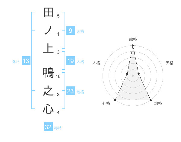 田ノ上 鴨之心さんを姓名の画数から五運を鑑定