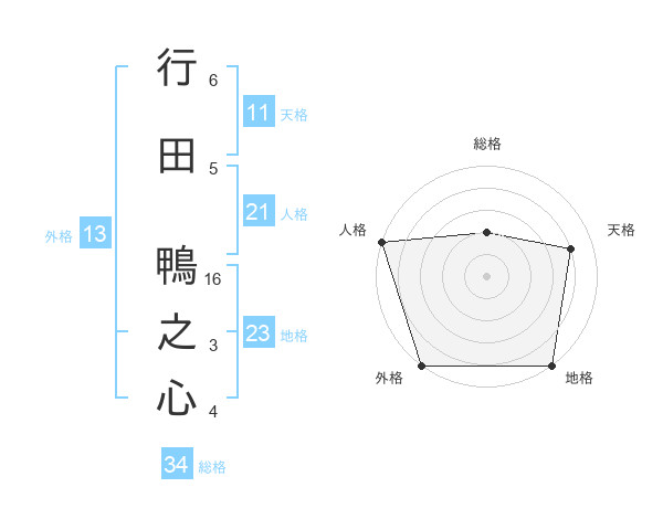 行田 鴨之心さんを姓名の画数から五運を鑑定