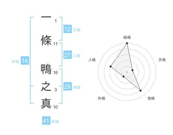 一條 鴨之真さんを姓名の画数から五運を鑑定