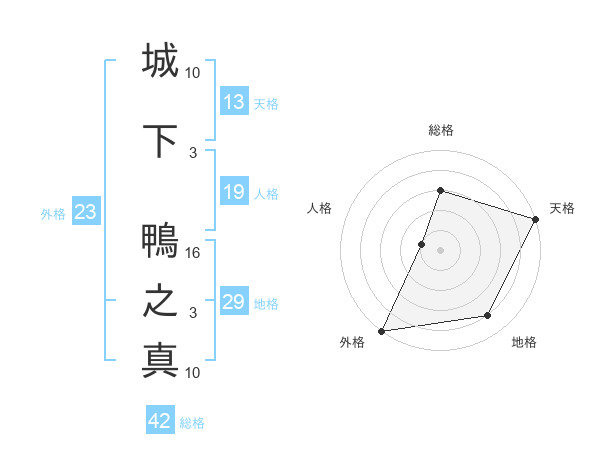 城下 鴨之真さんを姓名の画数から五運を鑑定