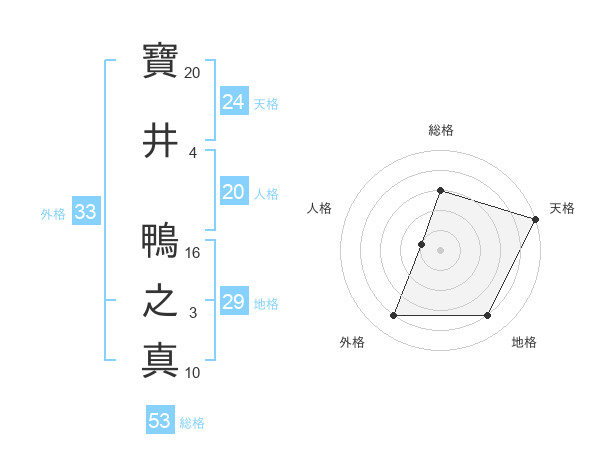 寶井 鴨之真さんを姓名の画数から五運を鑑定
