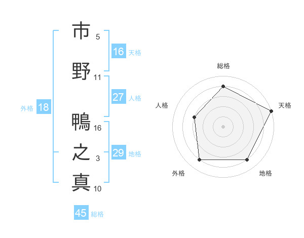 市野 鴨之真さんを姓名の画数から五運を鑑定