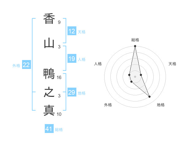 香山 鴨之真さんを姓名の画数から五運を鑑定