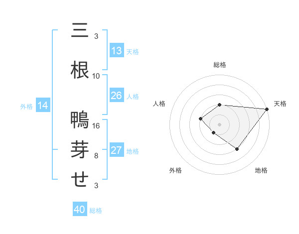 三根 鴨芽せさんを姓名の画数から五運を鑑定
