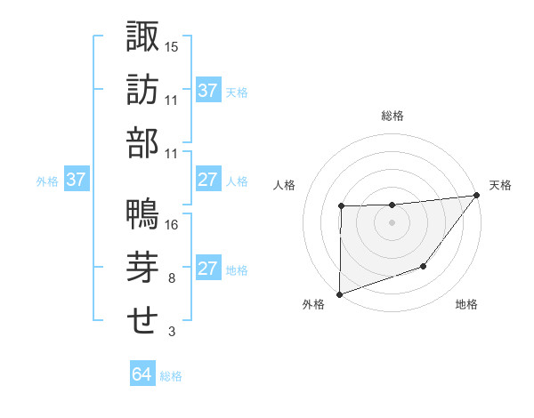 諏訪部 鴨芽せさんの外格は37画の5点!