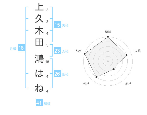 上久木田 鴻はねさんを姓名の画数から五運を鑑定