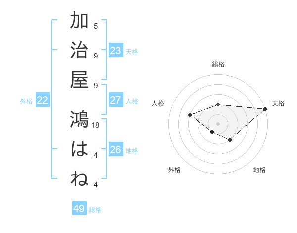 加治屋 鴻はねさんの総格は49画の2点