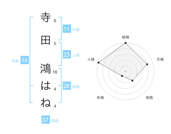 寺田 鴻はねさんを姓名の画数から五運を鑑定