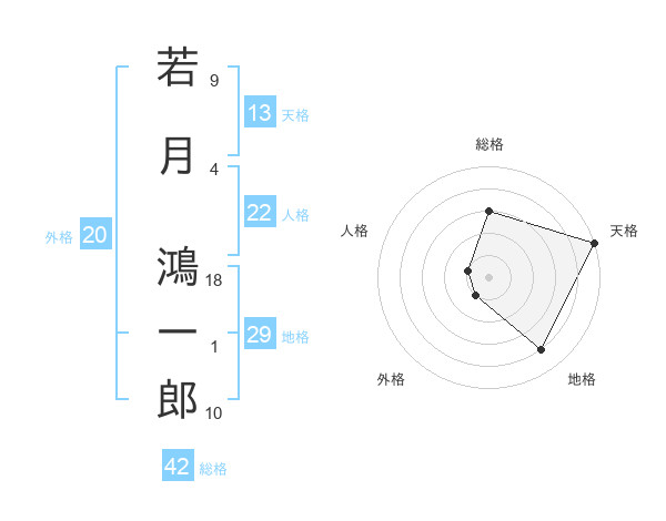 若月 鴻一郎さんを姓名の画数から五運を鑑定