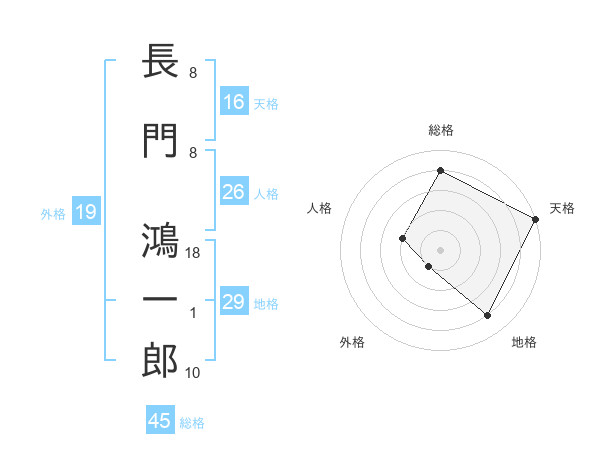 長門 鴻一郎さんの総格は45画の4点!