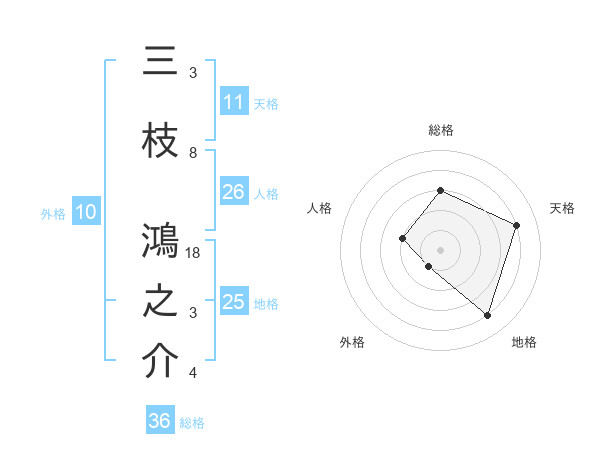 三枝 鴻之介さんの天格は11画の4点!