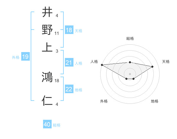 井野上 鴻仁さんを姓名の画数から五運を鑑定