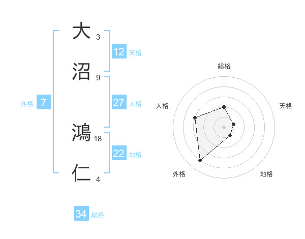 大沼 鴻仁さんを姓名の画数から五運を鑑定