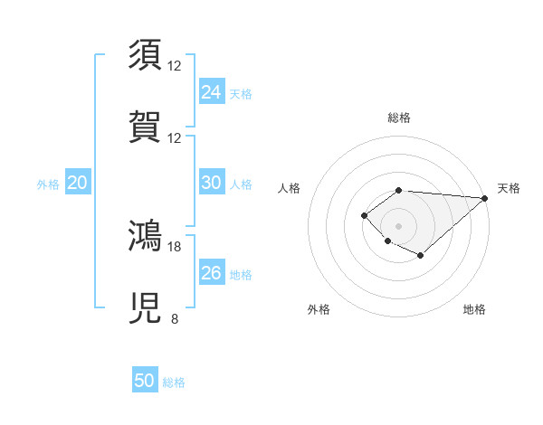 須賀 鴻児さんを姓名の画数から五運を鑑定