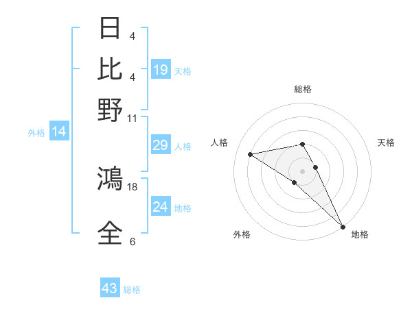日比野 鴻全さんを姓名の画数から五運を鑑定