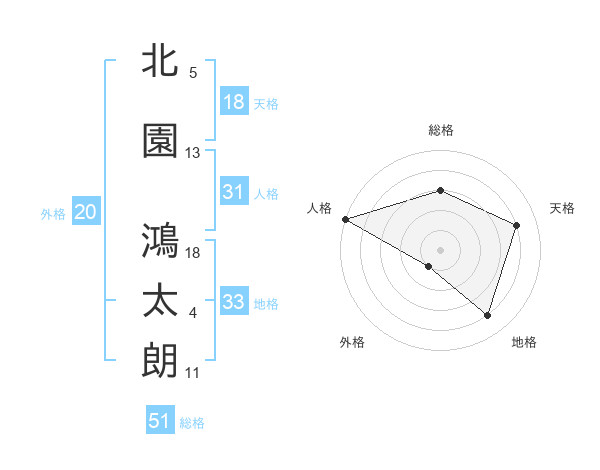 北園 鴻太朗さんを姓名の画数から五運を鑑定