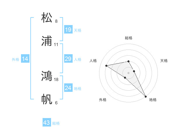 松浦 鴻帆さんを姓名の画数から五運を鑑定