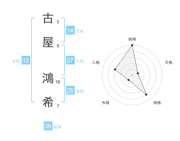 古屋 鴻希さんの総格は39画の5点!
