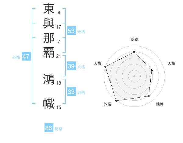 東與那覇 鴻幟さんを姓名の画数から五運を鑑定