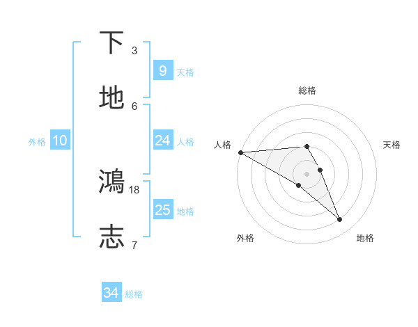 下地 鴻志さんを姓名の画数から五運を鑑定