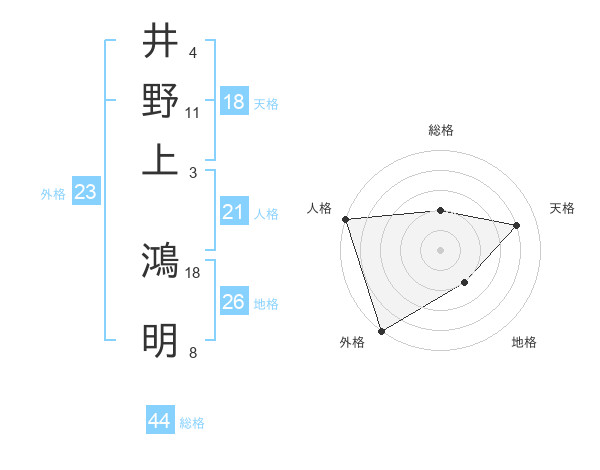 井野上 鴻明さんを姓名の画数から五運を鑑定