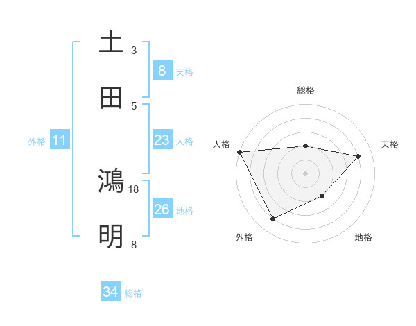 土田 鴻明さんを姓名の画数から五運を鑑定