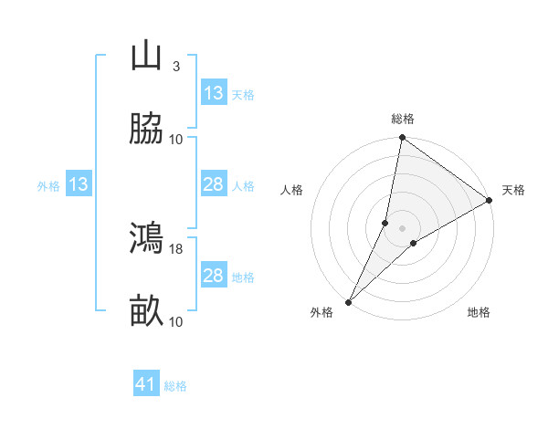 山脇 鴻畝さんを姓名の画数から五運を鑑定